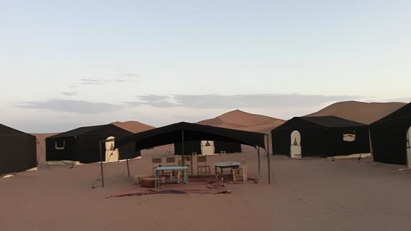 En fin d’après-midi, vous arrivez au bivouac saharien, où vous passerez la nuit sous une tente nomade ou à la belle étoile, selon vos envies. Le dîner est servi autour du feu, accompagné de chants et de musique traditionnelle sahraouie, pour une soirée conviviale et authentique au cœur du désert.