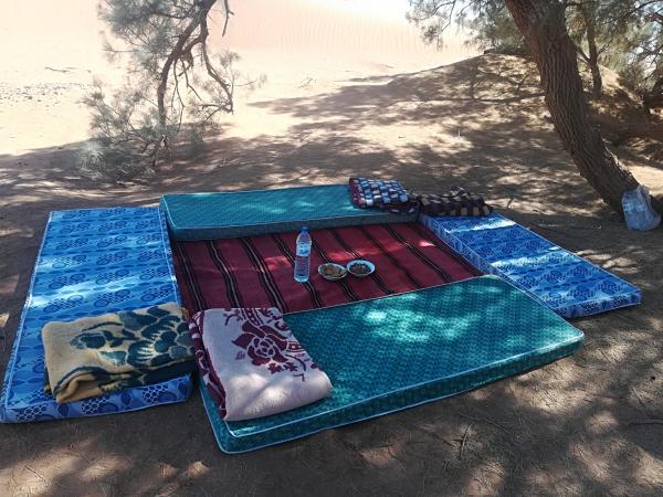 Deuxième proposition : une nuit dans le désert marocain dans notre bivouac à Erg Lihoudi, à 8 km de Mhamid.